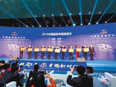2019年度的調(diào)查推選活動在大數(shù)據(jù)采集與分析的基礎(chǔ)上,通過公眾調(diào)查以及材料申報等系列工作,將主觀調(diào)查與客觀數(shù)據(jù)調(diào)查相結(jié)合,專業(yè)評價機(jī)構(gòu)和評審委員會共同確認(rèn),在100個城市的激烈競爭中,最終產(chǎn)生“2019中國最具幸福感城市”名單,依次是:成都、杭州、寧波、西安、廣州、長沙、溫州、臺州、銅川、徐州。