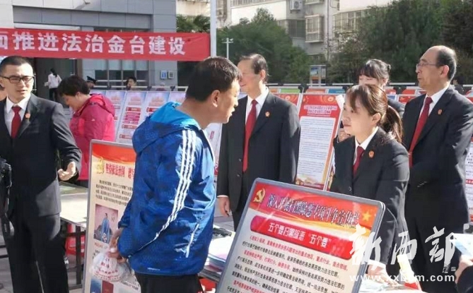 3、豐富普法宣傳形式,促進法治文化建設(shè)。把“智慧普法”作為提升普法工作的有效手段。一是按照上級司法行政部門安排,積極為我區(qū)申報安裝普法智慧機14臺。二是組織開展了迎接建國70周年金臺區(qū)第二屆新媒體快樂學(xué)法大賽,并在全區(qū)機關(guān)單位選拔人員,參加了寶雞市第二屆全國新媒體快樂學(xué)法大賽線下賽,提高了全區(qū)干部職工的學(xué)法積極性。三是持續(xù)發(fā)揮“金臺司法”微信平臺等作用,全年累計推送微信消息100余條;同時開展短信普法活動,與移動、聯(lián)通公司合作,全年發(fā)放普法短信14萬余條,增強普法宣傳實效性和針對性;與郵政公司合作利用微信朋友圈公益普法廣告推送“12.4”國家憲法日主題宣傳17萬余條。四是持續(xù)加強法治文化陣地建設(shè),在金河鎮(zhèn)金豐村、陳倉鎮(zhèn)團結(jié)村新建成LED宣傳屏兩塊,成為群眾學(xué)習(xí)法律、了解政策的有力平臺。