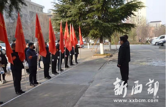 “旗幟在手,黨徽在胸,誓不除‘疫’人不回!”1月31日,在岐山縣舉行的阻擊疫情黨員先鋒隊授旗儀式上,第六隊隊長李勝利慷慨激昂地說。
