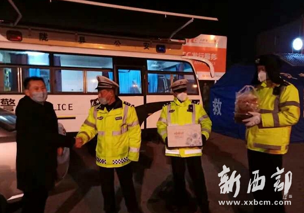 2月6日晚,印象成都火鍋店經(jīng)理韓利平深入省際隴關(guān)公安檢查站、隴縣高速出口疫情防控檢查點(diǎn)、212省道隴縣堯場(chǎng)檢查點(diǎn)向民警送來了熱騰騰的愛心晚餐、方便面和飲品。