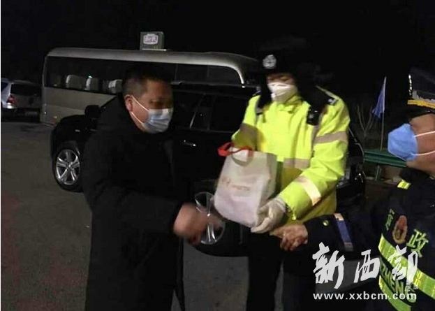 2月5日晚以來,隴縣尚德酒店總經(jīng)理李小林派員工堅(jiān)持每晚10時(shí)為隴縣高速出口疫情防控檢查點(diǎn)民警送去愛心餐,并表示愛心餐堅(jiān)持送到疫情結(jié)束。