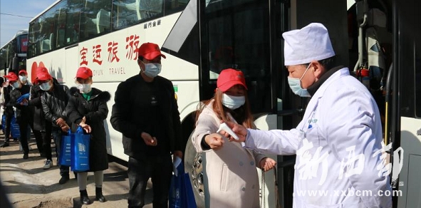 針對(duì)疫情防控和赴江蘇務(wù)工人員較多的實(shí)際,隴縣人社部門嚴(yán)格審查務(wù)工人員健康狀況,組織免費(fèi)就近體檢、開具健康證明,逐一確定外出務(wù)工人員。并積極牽線搭橋,對(duì)去江蘇省沃得公司176名務(wù)工人員采取“統(tǒng)一包車、統(tǒng)一餐飲、統(tǒng)一防護(hù)”,以“點(diǎn)對(duì)點(diǎn)、一站式 ”專車送進(jìn)廠門的方式進(jìn)行勞動(dòng)力轉(zhuǎn)移就業(yè)輸送,確保農(nóng)民工安全健康上崗。每輛直通車上配備了兩名經(jīng)驗(yàn)豐富的司機(jī)和一名隨車服務(wù)人員,主要負(fù)責(zé)體溫檢測(cè)、講解自我防控措施和服務(wù)保障等工作。來(lái)自溫水鎮(zhèn)團(tuán)結(jié)村二組農(nóng)民趙林娟告訴筆者,“原本還有些擔(dān)心人多,聚集不安全,現(xiàn)在放心多了!”
