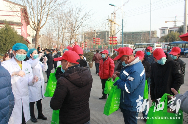 當天,在該縣市民中心廣場上,62名外出務(wù)工人員手提綠色布袋,整體排列。原來,這個綠色布袋是縣上為外出務(wù)工人員送上的“外出務(wù)工大禮包”,里面裝有防護物品和政策宣傳冊等,讓務(wù)工人員感受到了溫暖,更吃下了“定心丸”。上午十點準,工作人員給每個務(wù)工人員測量了體溫,并叮囑路途應(yīng)注意的安全事項后,高高興興地踏上務(wù)工專車。