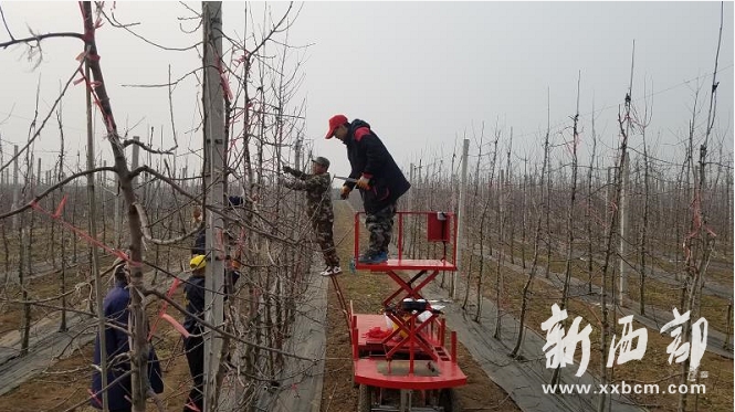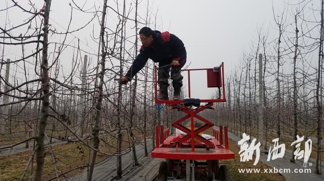 雪勤勞是服務隊的技術人員,他說,一個人修剪果樹,爬高下低,費時費力,一畝果園要用4個工,服務隊隊員相互配合能提高效率,至少能減少一半的用工量。