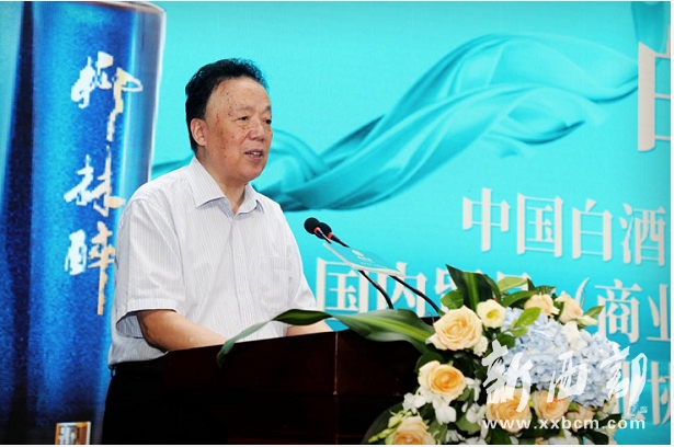 中國白酒專業(yè)委員會常務(wù)理事、國內(nèi)貿(mào)易(商業(yè))白酒技術(shù)協(xié)作組副組長、原陜西省釀酒工業(yè)協(xié)會會長兼白酒專家組組長白希智先生講話