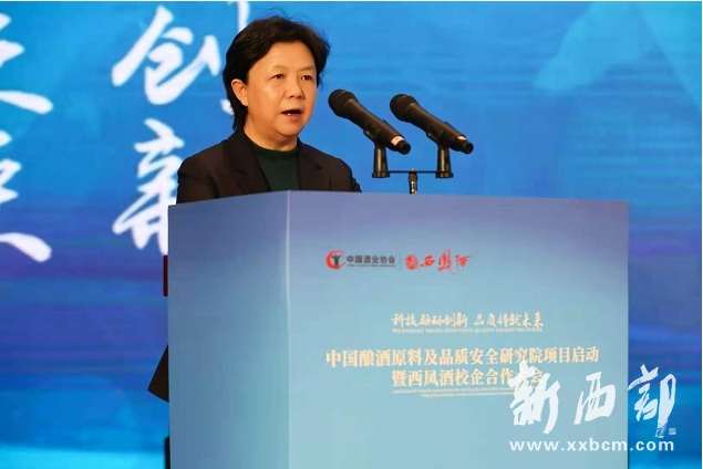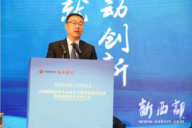 11月14日,由中國酒業(yè)協(xié)會主辦,中國釀酒原料及品質安全研究院和陜西西鳳酒廠集團有限公司聯(lián)合承辦的,中國釀酒原料及品質安全研究院項目啟動暨西鳳酒校企合作大會在寶雞隆重召開。中國輕工業(yè)聯(lián)合會副會長賈志忍,寶雞市市長惠進才,寶雞市委副書記吳鐵,寶雞市委常委、副市長王寧崗,陜西省科學技術協(xié)會黨組成員、副主席張俊華,寶雞市政府秘書長陳小平,榆林市人民政府副秘書長艾克彥,寶雞市國資委主任朱吉良等領導;中國工程院院士、大連工業(yè)大學食品學院教授朱蓓薇,中國酒業(yè)協(xié)會理事長宋書玉,中國酒業(yè)協(xié)會名譽理事長王延才,中國食品發(fā)酵工業(yè)研究院有限公司總經(jīng)理董建輝,江南大學副校長徐巖,陜西科技大學校長李志健,西北大學黨委副書記趙作紐,陜西師范大學副校長楊祖培,陜西理工大學校長張社民等行業(yè)領導和國內著名院校專家;西鳳集團公司領導班子成員、西鳳公司股東代表,西鳳酒經(jīng)銷商、供應商代表;駐寶省屬、市屬企業(yè)代表和新聞媒體共聚寶雞為中國白酒高質量發(fā)展獻智助力。會議由中國酒業(yè)協(xié)會秘書長何勇主持。