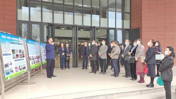 西安市東城一中校長李少臻代表學(xué)校,對大家的光臨表示歡迎,介紹了東城一中兩項工作的推進情況,引領(lǐng)觀摩團參觀了新建圖書館、體育館和合唱、太極等特色社團。