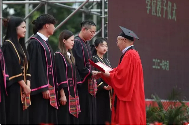 在授學(xué)位儀式上,副校長吳俊林教授宣讀了本科學(xué)生學(xué)位授予決定,董事長呂明博士為省級優(yōu)秀本科畢業(yè)生代表頒發(fā)學(xué)位證書,學(xué)位委員會(huì)成員及校領(lǐng)導(dǎo)為本科畢業(yè)生代表頒發(fā)學(xué)位證書。