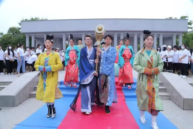 首先進(jìn)行了迎權(quán)杖儀式和漢服展演。