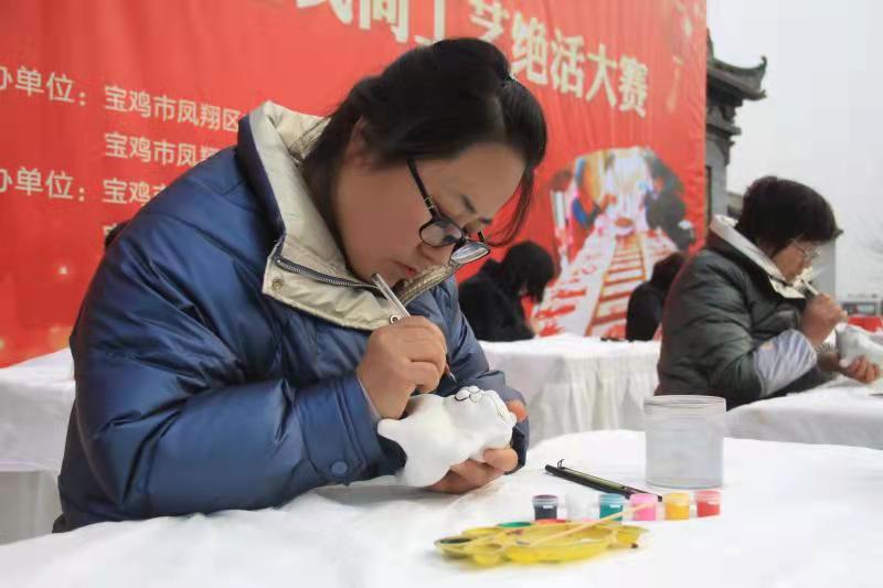 2月10日,在鳳翔區(qū)城關鎮(zhèn)六營泥塑文化廣場,由鳳翔區(qū)文化和旅游局和城關鎮(zhèn)人民政府主辦的2022年寶雞市鳳翔區(qū)民間工藝絕活大賽比賽正酣,20位泥塑藝人圍繞“虎”年主題進行現(xiàn)場創(chuàng)作,精彩的泥塑捏制和繪制展演吸引了眾多游客群眾駐足觀看拍照,叫好聲和掌聲連連不斷。