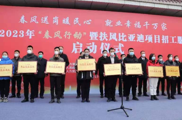 伴著春節(jié)來臨的喜氣,迎著初春乍暖還冷的天氣,1月12日上午,寶雞市2023年“春風(fēng)行動(dòng)”暨扶風(fēng)比亞迪項(xiàng)目招工服務(wù)活動(dòng)在扶風(fēng)縣市民中心廣場啟動(dòng),為全市2023年就業(yè)工作、重點(diǎn)項(xiàng)目建設(shè)的良好開局揚(yáng)帆起航。通過線上線下、直播帶崗,來自江蘇昆山、徐州邳州、浙江寧波及省內(nèi)外的231家用人單位提供就業(yè)崗位5100余個(gè),涉及制造業(yè)、服務(wù)業(yè)、物流及食品加工業(yè)。