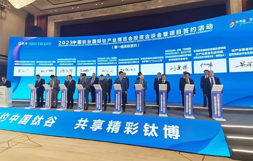 4月20日下午,2023中國鈦谷國際鈦產(chǎn)業(yè)博覽會(huì)投資洽談會(huì)暨項(xiàng)目簽約活動(dòng)在寶雞奧斯頓酒店舉行。