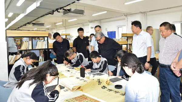 在西安市東城第一中學(xué)校長李少臻的引領(lǐng)下,胡振民主任一行邊聽邊看邊體驗(yàn),詳細(xì)了解學(xué)校青少年思想道德建設(shè)、校園文化建設(shè)等情況。