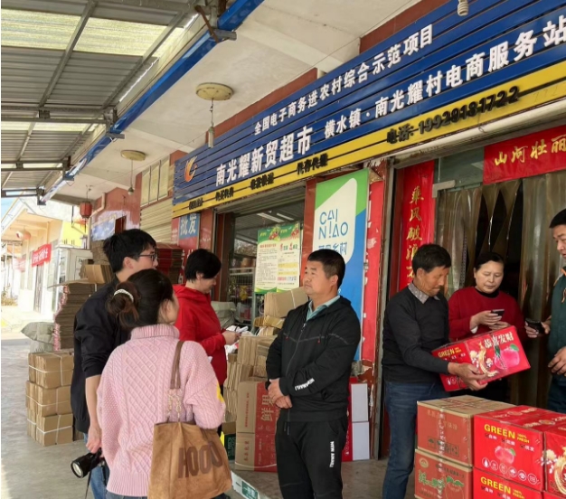 謝玲芳在果園村村委會旁邊開著一家超市,中國郵政集團有限公司寶雞市鳳翔區(qū)分公司充分利用這里人流量大,交通方便的優(yōu)勢,在這里開設(shè)郵政服務(wù)站鮮果寄收點。目前,鳳翔區(qū)郵政分公司在全區(qū)共開設(shè)了140余家到村組的便民服務(wù)站,讓果農(nóng)不出村就能郵寄鮮果。