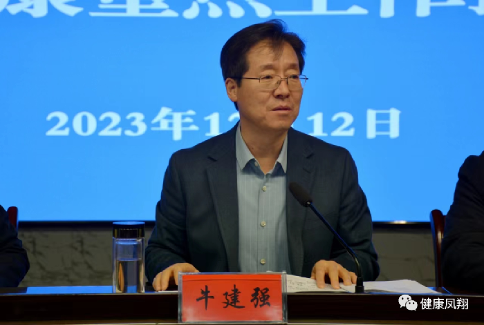 為推動(dòng)全區(qū)衛(wèi)生健康重點(diǎn)工作順利實(shí)施,確保全年目標(biāo)任務(wù)的圓滿完成,12月12日上午,鳳翔區(qū)衛(wèi)健局召開全區(qū)衛(wèi)生健康重點(diǎn)工作推進(jìn)會(huì),會(huì)議邀請(qǐng)了區(qū)政府副區(qū)長牛建強(qiáng)指導(dǎo)會(huì)議,局黨組書記、局長張建峰對(duì)做好當(dāng)前全區(qū)衛(wèi)生健康重點(diǎn)工作進(jìn)行安排部署,會(huì)議由局黨組成員、副局長蘇紀(jì)明主持。