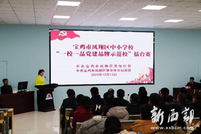 為了全面深化學(xué)習(xí)貫徹習(xí)近平新時(shí)代中國(guó)特色社會(huì)主義思想主題教育,推進(jìn)中小學(xué)校黨組織領(lǐng)導(dǎo)的校長(zhǎng)負(fù)責(zé)制在我區(qū)落地落實(shí),提高基層黨組織書(shū)記履職能力,示范引領(lǐng)全區(qū)中小學(xué)黨建工作特色化發(fā)展,12月13日,寶雞鳳翔區(qū)教體系統(tǒng)隆重舉行中小學(xué)校“一校一品黨建品牌示范?!崩夼_(tái)賽。區(qū)委常委、組織部部長(zhǎng)劉飛,區(qū)政府副區(qū)長(zhǎng)王珍出席。各鎮(zhèn)教育總支書(shū)記,各中小學(xué)校黨支部書(shū)記、校長(zhǎng),直屬單位負(fù)責(zé)同志150余人參加活動(dòng)。