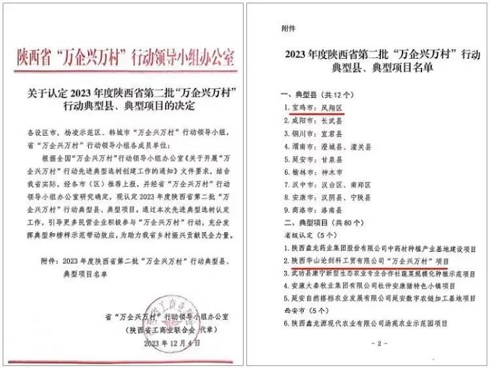 爭取全省“萬企興萬村 助力鄉(xiāng)村教育振興”公益捐贈項目,為我區(qū)20所學校捐助價值80萬元的教學設施。按照“實驗項目引領,三產(chǎn)融合增效”的工作思路,引導民營企業(yè)參與鄉(xiāng)村振興建設。2023年,鳳翔區(qū)榮獲陜西省第二批“萬企興萬村”行動典型縣;陜西華山論劍科工貿有限公司榮獲陜西省“萬企興萬村”典型項目;北水溝村被命名為市級“萬企興萬村”典型村;陜西柳林酒業(yè)集團有限公司、寶雞恒盛達工貿有限公司、陜西西府酒業(yè)有限公司等8戶企業(yè)榮獲寶雞市“萬企興萬村”先進典型項目。