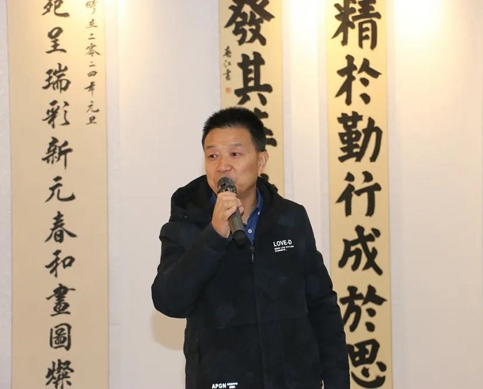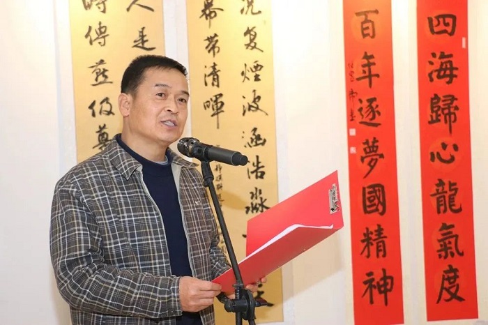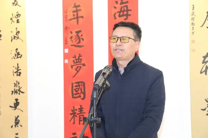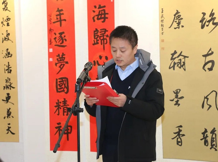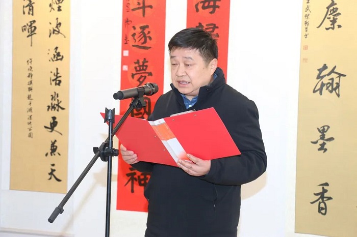 (縣文聯(lián)副主席、縣書法協(xié)會主席王玉鋼介紹展覽情況)