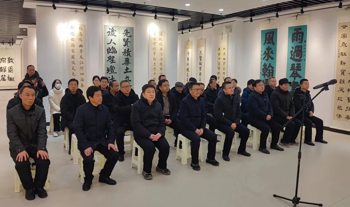 縣委常委、宣傳部長屈文剛,縣委宣傳部副部長、縣文聯(lián)主席趙亮,縣文旅局局長李杰、副局長楊海軍等領導出席指導開展儀式,縣文化館負責同志主持開展儀式??h文化館、縣書協(xié)、石鼓書畫院負責同志、獲獎作者及縣域書法愛好者代表40余人參加了本次開展儀式。