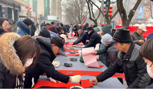近期以來,鳳翔區(qū)委宣傳部組織全區(qū)文藝界協(xié)會深入基層、服務(wù)群眾,下沉村鎮(zhèn)、機關(guān)單位、廠礦企業(yè),為廣大群眾和干部職工義寫春聯(lián)8000余幅,以實際行動全面踐行“以人民為中心”的創(chuàng)作導(dǎo)向,為廣大群眾提供豐富的傳統(tǒng)文化精神給養(yǎng)。