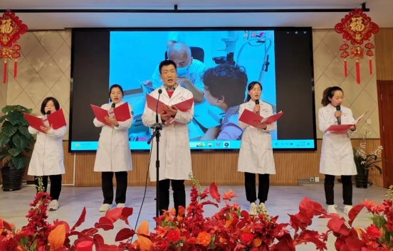 黨支部書記、院長(zhǎng)湯澎同志在年會(huì)中,向大家表達(dá)了最深切的感謝和祝福!一起回顧了過去一年醫(yī)院取得的成績(jī)及湯澎眼科人奮斗的點(diǎn)點(diǎn)滴滴,展望了未來(lái)的發(fā)展方向。站在新的歷史起點(diǎn),直面新的機(jī)遇挑戰(zhàn)。一年來(lái),全院深入貫徹落實(shí)黨的二十大精神,我們堅(jiān)持感恩和敬畏兩種心態(tài),攻堅(jiān)克難,突破重圍,職工共謀發(fā)展,共同進(jìn)步,同心協(xié)力打造員工滿足、患者滿意、同行認(rèn)可、社會(huì)認(rèn)同、政府放心的品牌醫(yī)院。