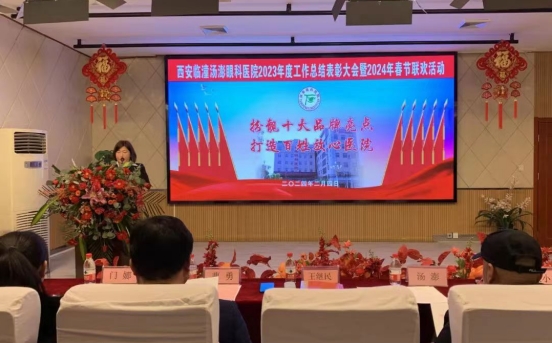 西安臨潼湯澎眼科醫(yī)院辦公室主任雷紅梅宣讀2024年工作要點(diǎn)。