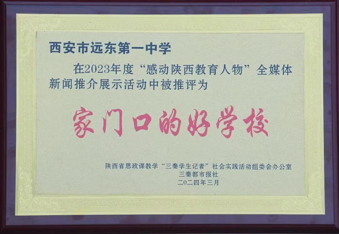 西安市遠(yuǎn)東一中在2023年度“感動(dòng)陜西教育人物”全媒體新聞推介展示活動(dòng)中,被推評(píng)為“家門口的好學(xué)?!保h(yuǎn)東一中校長(zhǎng)楊省也被推評(píng)為“陜西教育創(chuàng)新發(fā)展領(lǐng)航校長(zhǎng)”。