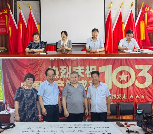 2024年6月26日,為慶祝中國(guó)共產(chǎn)黨成立103周年,豐京書(shū)畫(huà)研究院院長(zhǎng)王芬女士帶領(lǐng)書(shū)畫(huà)院骨干老師:閆忠武、韓立、董新平、胡江濤、劉反明、田水利、田穩(wěn)強(qiáng)、馬小茗、董軍社、賈偉勤、高玉前、張智軍、周繼愚等,還有西咸書(shū)法家協(xié)會(huì)黨支部書(shū)記楊發(fā)發(fā)老師一起走進(jìn)陜西省西安市西咸新區(qū)馬王街道辦沙河村黨員服務(wù)中心和西咸新區(qū)馬王街辦副主任曹琪、辦便民大廳主任杜寧、網(wǎng)絡(luò)員呂新利、李瑞,馬王街辦沙河村書(shū)記曾財(cái)文、副書(shū)記王軍利、副主任明榮軍、三委會(huì)干部和全體黨員一起,舉辦了奮斗百年路 啟航新征程——書(shū)畫(huà)傳情慶黨誕獻(xiàn)禮活動(dòng)。以筆墨為媒,以書(shū)畫(huà)為橋,共同慶祝這一偉大節(jié)日。同時(shí)跟蹤報(bào)道的媒體為城市金融報(bào)張燕、張玲、姚竹梅。
