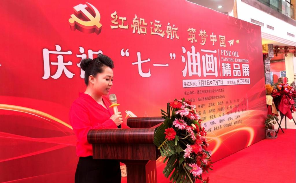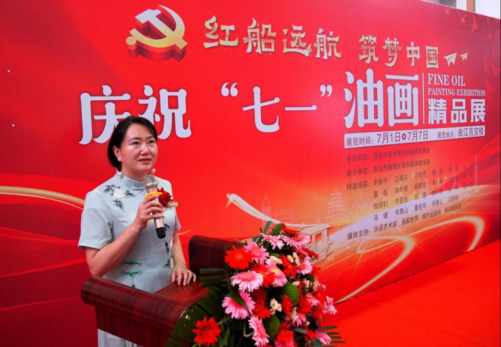西安市美協(xié)油畫藝委會(huì)副主任、雁塔區(qū)青美協(xié)主席李茹致答謝詞,她介紹畫展的籌備過(guò)程、征集作品及審稿驗(yàn)稿的嚴(yán)謹(jǐn)程序,介紹了作品數(shù)量、參展畫家的涵蓋年齡及豐富多彩的藝術(shù)表現(xiàn)形式等,表達(dá)了畫家們對(duì)黨的忠誠(chéng)、對(duì)祖國(guó)的熱愛、對(duì)生活積極努力和進(jìn)取的時(shí)代風(fēng)尚。并對(duì)所有參展嘉賓、畫家、媒體和各界藝術(shù)愛好者表達(dá)了熱烈歡迎和衷心感謝。