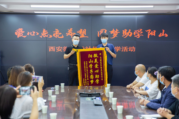 活動(dòng)現(xiàn)場(chǎng),西安微美學(xué)社負(fù)責(zé)人和愛心人士現(xiàn)場(chǎng)為大學(xué)新生發(fā)放了助學(xué)金,為陽山村委會(huì)捐贈(zèng)了辦公用品和抗疫物資。鎮(zhèn)安縣融媒體中心向微美學(xué)社贈(zèng)送了錦旗和牌匾,青銅關(guān)鎮(zhèn)陽山村負(fù)責(zé)人向各位“愛心大使”頒發(fā)了證書。