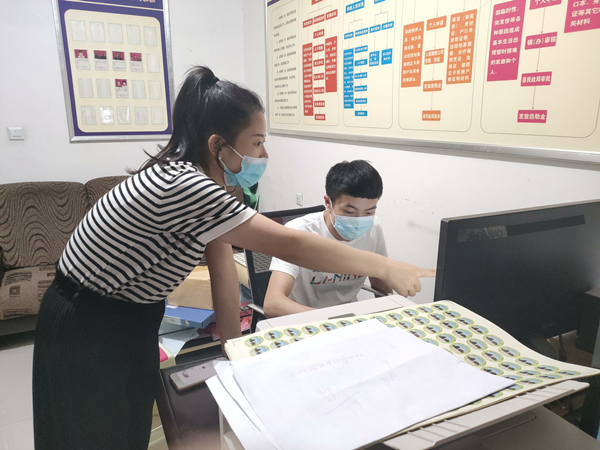 手不輟筆,他是刺促不休的“老黃?!?。王炫,男,中共黨員,現(xiàn)任西關(guān)村委會(huì)文書(shū)。疫情中他主要負(fù)責(zé)文書(shū)統(tǒng)計(jì),建檔立冊(cè),數(shù)據(jù)報(bào)送,內(nèi)勤內(nèi)務(wù)等工作,這是一個(gè)默默無(wú)聞的崗位,所有數(shù)據(jù)最終匯集至他這里,他需要夜以繼日的進(jìn)行核對(duì)并報(bào)送相關(guān)數(shù)據(jù)、文件給上級(jí),并且要將上級(jí)精神及時(shí)傳達(dá)給班子其他成員,內(nèi)勤內(nèi)務(wù)也需要他進(jìn)行統(tǒng)籌,疫情期間他文書(shū)統(tǒng)計(jì)210余份,數(shù)據(jù)報(bào)送68份,為密接者建檔立冊(cè)260余冊(cè),處理內(nèi)勤內(nèi)務(wù)134件,在文書(shū)這個(gè)崗位上默默為其他班子成員排憂解難,可稱之為默默奉獻(xiàn)“老黃?!边@一稱號(hào)。