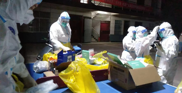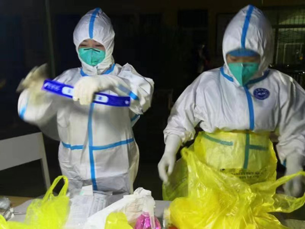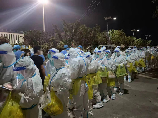 “下載、注冊(cè)、登錄、掃描開管、錄入信息、核對(duì)信息……”這就是每次核酸檢測(cè)中登記員的信息錄入過(guò)程……二十人一管,一遍遍地掃,一遍遍地核對(duì)。他們的手從未落下,一直維持著同一個(gè)動(dòng)作,舉著手機(jī),重復(fù)操作,直到錄入完成。雖說(shuō)錄入流程簡(jiǎn)單,可一天下來(lái)并不輕松。需要一直穿著密不透風(fēng)的防護(hù)服,近30度的高溫穿著防護(hù)服,就和蒸桑拿一樣,汗水直流。由于防護(hù)服穿脫很不方便,且錄入信息一做就是十多個(gè)小時(shí)。為此,我們的教師特意選擇吃玉米、酸奶這樣的食物,不喝水與稀飯,避免工作時(shí)上洗手間,一直以高度負(fù)責(zé)的態(tài)度做好信息錄入工作。碰到一些老人家,手機(jī)操作慢,她都耐心幫助他們正確登記信息,保障順利完成檢測(cè)任務(wù)。