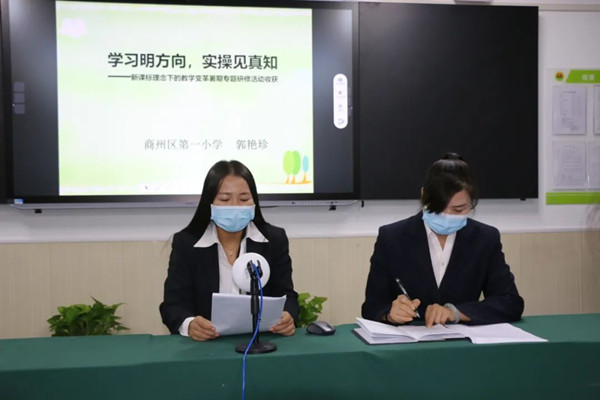 疫情退去陰霾散,返校時節(jié)秋滿園。帶著對疫情影響下姍姍來遲的秋季新學期的憧憬,商州區(qū)第一小學全體教師在綿綿秋雨中返校參加2022年暑期教師培訓整訓活動,并于9月20日上午進行了新課程標準培訓匯報交流和檢測活動。活動由教研室副主任張麥桂主持。