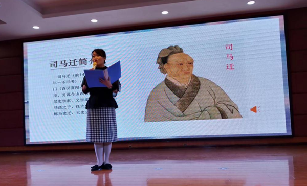 接著劉妮老師介紹了《史記》的偉大意義,這是中國的第一部紀傳體通史,開史學(xué)記載之先河,影響深遠,后續(xù)的中國官方正史“二十四史”及其它史書,都依照《史記》體例。《史記》通過記述人物來反映歷史事件,是記言、記事的進一步結(jié)合,能夠更好地表現(xiàn)人物的性格?!妒酚洝饭惨话偃恚惺?,十二本紀,書八章,世家三十,列傳七十,共一百三十篇,五十二萬六千五百字。