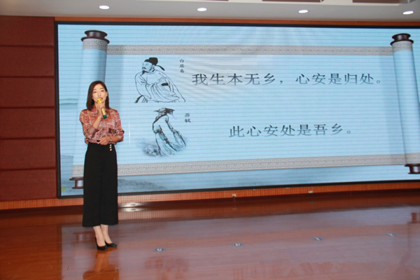 一襲紅色長裙、溫文爾雅的講書人張秋霞從革命烈士賀錦齋的一封家書展示開始,通過回望過去的時代,看到他們的情懷、追求和一顆為國捐軀的赤誠之心,激勵著我們誓用信仰之光照亮自己的教師生涯,為中國夢貢獻(xiàn)力量!