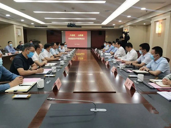 考察團一到六合區(qū),雙方就召開山陽縣與六合區(qū)東西部協(xié)作聯(lián)席會議。謝曉軍首先代表山陽縣委、縣政府,對六合區(qū)長期以來對山陽的大力支持和無私幫助表示衷心的感謝。他指出,山陽六合兩地雖然相隔千里,但交流合作源遠流長,多年來雙方在產(chǎn)業(yè)發(fā)展、人才交流等方面深度合作,結(jié)下了深厚的友誼。通過開展精準有力的協(xié)作,極大助力山陽打贏脫貧攻堅戰(zhàn),特別是山陽整縣脫貧摘帽以來,雙方繼續(xù)加大協(xié)作力度,為山陽持續(xù)鞏固拓展脫貧攻堅成果、有效銜接鄉(xiāng)村振興注入了強大動力。他希望雙方繼續(xù)用好東西部協(xié)作這個好平臺,充分發(fā)揮六合區(qū)的資金、技術(shù)和人才優(yōu)勢,以及山陽縣的資源、環(huán)境優(yōu)勢,進一步健全溝通機制,創(chuàng)新合作方式,持續(xù)深化產(chǎn)業(yè)合作、人才交流、勞務(wù)協(xié)作和社會幫扶,推動合作向更廣領(lǐng)域、更深層次邁進,努力打造新時期東西部協(xié)作典范,助推兩地經(jīng)濟社會高質(zhì)量發(fā)展。