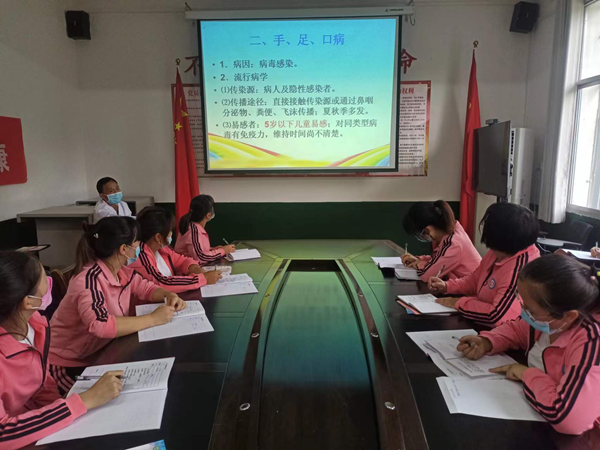 會上,商南縣試馬鎮(zhèn)衛(wèi)生院的田基敏副院長,就常見的傳染病知識做了專題培訓(xùn),向全體教職工講解了水痘、手足口病、流行性感冒、諾如病毒、流行腮腺炎等十幾種常見傳染病的發(fā)病癥狀、傳播途徑、易感人群、預(yù)防措施內(nèi)容,提高了教職工對傳染病的防控能力。各教師紛紛表示,在打掃好幼兒園環(huán)境的同時,更要做好幼兒園全面的消毒工作,利用家訪、微信、電話等方式攜手家長積極配合,參與到幼兒傳染病防控工作中來,共同做好幼兒的傳染病防控工作。