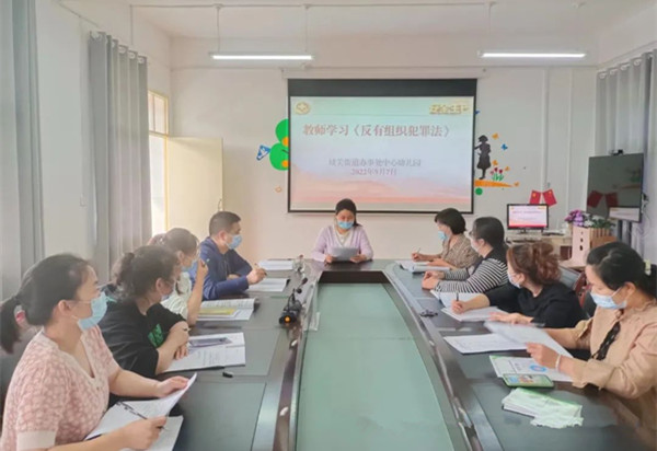 7月初,商南縣城關(guān)街道辦事處中心幼兒園召開(kāi)園委會(huì),討論制定幼兒園《反有組織犯罪法》活動(dòng)計(jì)劃,將《反有組織犯罪法》列入“八五”普法責(zé)任清單, 多措并舉貫徹實(shí)施。