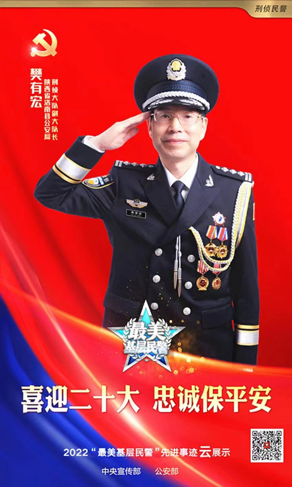 9月25日,中央宣傳部、公安部聯(lián)合發(fā)布38名全國“最美基層民警”先進事跡。洛南縣公安局刑偵大隊副大隊長樊有宏作為全省唯一民警當選全國“最美基層民警”。