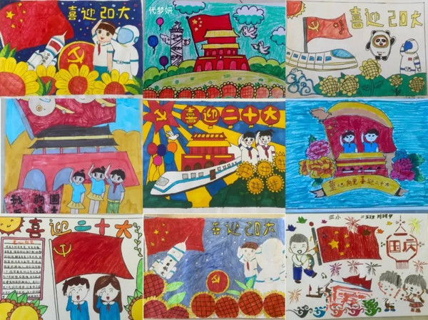 同學(xué)們用靈巧的雙手勾勒出一幅幅色彩斑斕的圖畫,把對祖國對黨的祝福深藏在“童畫”的世界里,為二十大的召開獻(xiàn)禮。