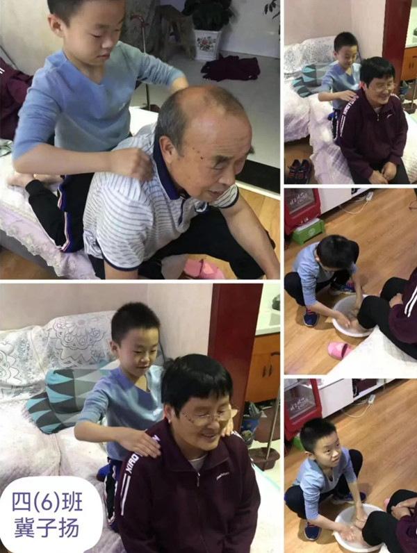 感恩盡孝我踐行。三、四年級隊員們有的陪爺爺、奶奶鍛煉身體,一起做做運動;有的陪爺爺、奶奶聊天,拉拉家常、談談心;有的幫助爺爺、奶奶做點家務事,減輕爺爺、奶奶的辛勞……他們用實際行動表達了對爺爺奶奶的感恩之情。