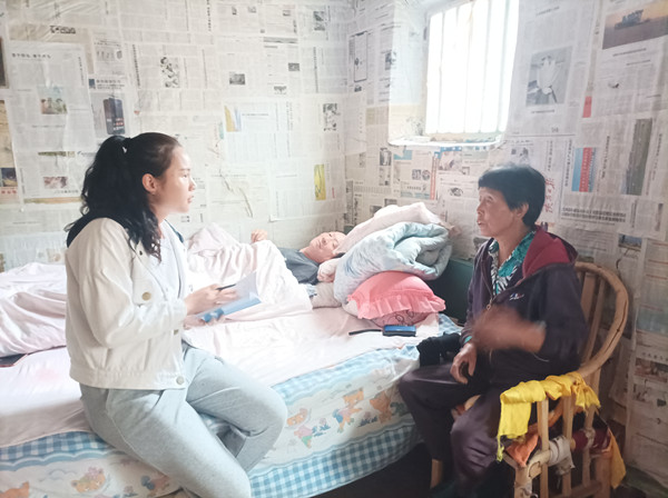 今年3月,全村60歲以上老人要進(jìn)行養(yǎng)老保險(xiǎn)認(rèn)證,這項(xiàng)工作對(duì)在村老人的意義很大,如果耽擱將影響來(lái)年的養(yǎng)老金發(fā)放。作為片長(zhǎng),楊貝快速在腦子里過(guò)了一遍片區(qū)老人的情況,就直接來(lái)到了有認(rèn)證困難的一戶人家,坐在輪椅上的謝寶牢老遠(yuǎn)就打著招呼:“女女,來(lái)了快坐,一塊吃飯。”楊貝向老人說(shuō)明了來(lái)意,并為謝寶牢及妻子進(jìn)行了認(rèn)證,接著她又逐戶為幾位沒(méi)有智能手機(jī)的老人做了認(rèn)證。
