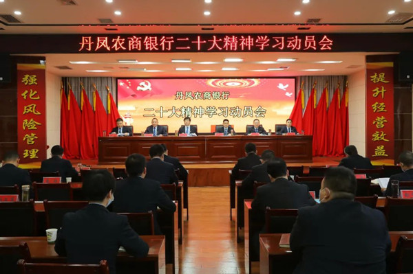 段保江同志強(qiáng)調(diào),學(xué)習(xí)貫徹落實(shí)二十大精神是我們當(dāng)前和今后一個(gè)時(shí)期的首要政治任務(wù),全行上下要認(rèn)真落實(shí)動(dòng)員大會(huì)安排部署,確保學(xué)習(xí)貫徹二十大精神在農(nóng)商行落地生根。他要求:一要把握精髓要義,切實(shí)把二十大精神的豐富內(nèi)涵學(xué)深學(xué)透,做到認(rèn)真研讀、入腦入心、融會(huì)貫通、聯(lián)系實(shí)際;二要全面深入貫徹,切實(shí)把二十大精神的部署要求落到實(shí)處,轉(zhuǎn)化為圍繞中心服務(wù)大局的新動(dòng)力、推動(dòng)農(nóng)商行高質(zhì)量發(fā)展的新舉措、構(gòu)建“清廉信合”的生動(dòng)實(shí)踐;三要精心組織謀劃,切實(shí)把二十大精神的學(xué)習(xí)貫徹抓緊抓好,做好組織安排、以上率下、學(xué)用結(jié)合、總結(jié)宣傳。為丹鳳農(nóng)商銀行高質(zhì)量發(fā)展提供堅(jiān)強(qiáng)的政治保障。