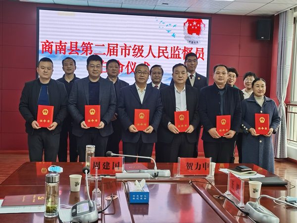 任命儀式由商南縣司法局黨組成員、副局長李勇主持。會上宣讀了商洛市司法局《關于任命市級人民監(jiān)督員的決定》,參會領導為新選任的8名市級人民監(jiān)督員頒發(fā)了任命書和人民監(jiān)督員證,新選任的人民監(jiān)督員面對國旗進行了集體宣誓,湯小虎律師作為新任人民監(jiān)督員代表作了任職發(fā)言。