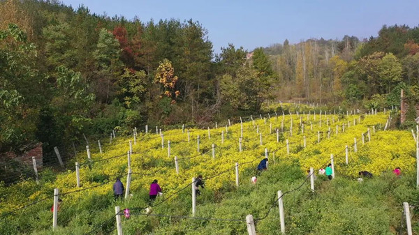 商南縣油坊嶺村種植的藥用菊花采用林下種植,在獼猴桃基地里套種菊花,既充分有效利用土地資源,還能實現(xiàn)以短養(yǎng)長,立體種植。獼猴桃采摘完,藥菊慢慢盛開開始采摘,當?shù)卮迕窨沙D暝诩议T口務工,基地在推動農業(yè)產業(yè)發(fā)展的同時,也為周邊閑散勞動力帶來了務工收入。金黃色的花朵為美麗鄉(xiāng)村增添了豐收的色彩,同時也為當?shù)卮迕翊蜷_了一條新的致富門路。