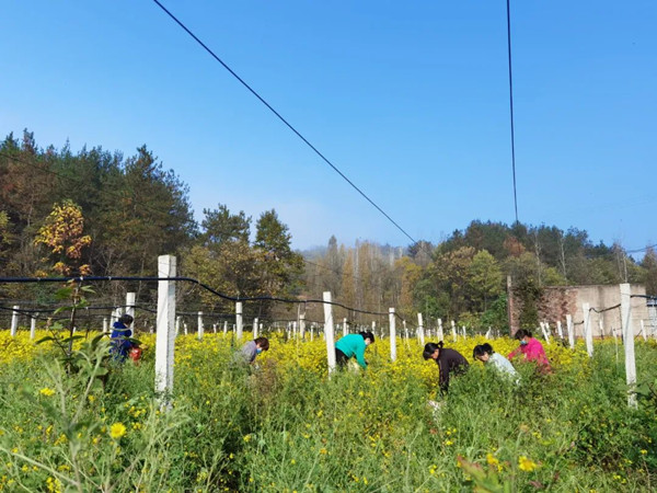 村民雷桂英今年63歲了,她說:“我年齡大了,不能出門打工,白天到這來采點黃菊花,活路也不重,晚上回家還能照顧家庭,照顧孫子?!?/p>