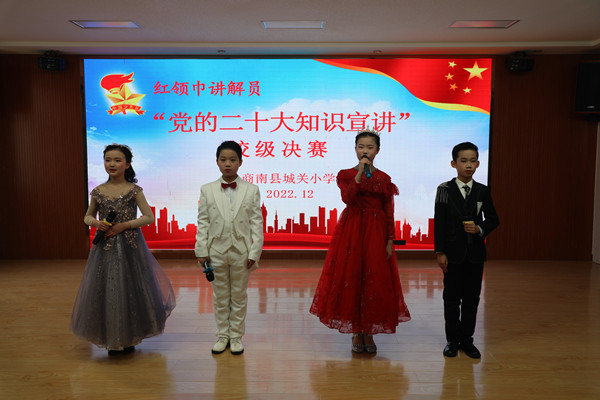 自11月以來(lái),共有近百名優(yōu)秀少先隊(duì)員參與了班級(jí)初賽、年級(jí)組復(fù)賽,通過(guò)層層選拔,推選出一批善觀、善講、善思的優(yōu)秀“紅領(lǐng)巾講解員”,12月8日下午,在學(xué)校五樓多功能廳,24名紅領(lǐng)巾講解員站在了校級(jí)決賽活動(dòng)的舞臺(tái)。