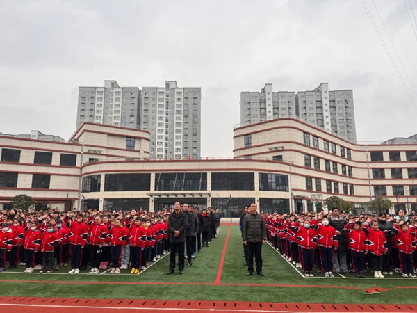 伴隨著《義勇軍進行曲》那高亢激昂的旋律,升旗儀式拉開了序幕,全體師生向國旗行注目禮,五星紅旗迎著朝陽冉冉升起。雖然天氣寒冷,但是每個學生都展現(xiàn)了積極陽光的精神面貌。