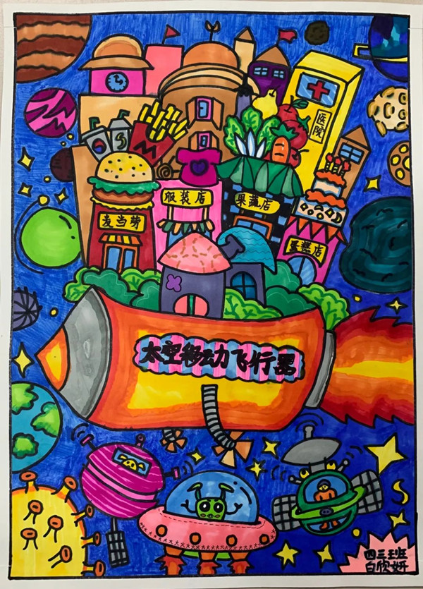 本次科技節(jié)由美術(shù)組、信息組和科學組全體教師通力協(xié)作,各年級和全體班主任密切配合,根據(jù)學生的年齡特點和科學素養(yǎng),分年級開展了科幻畫、電腦繪畫、科技小制作等個人項目,以及觀看科普視頻、趣味魔方、紙船承重等集體項目。無論是富有創(chuàng)意的繪畫,還是融智力和趣味為一體的集體比賽,無不展現(xiàn)了孩子們豐富的想象力和超強的動手能力。
