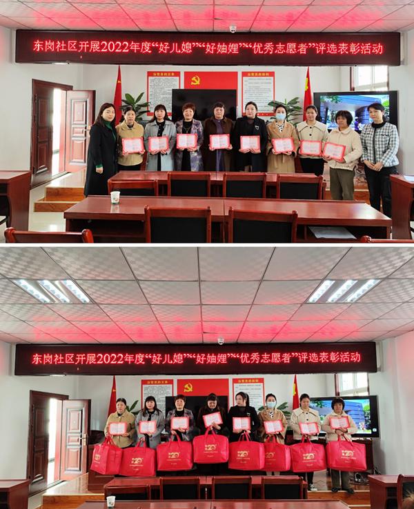 第二項是由社區(qū)居委會副主任趙霞講述社區(qū)評選出的8名“好兒媳”“好妯娌”“優(yōu)秀志愿者”。她們勤儉持家、團結(jié)友愛、鄰里和睦、甘于奉獻,弘揚了中華民族的傳統(tǒng)美德。社區(qū)副書記王瑞林宣讀對王聰霞等8位“好兒媳”“好妯娌”“優(yōu)秀志愿者”的表彰決定。社區(qū)書記和副書記為她們進行了頒獎。
